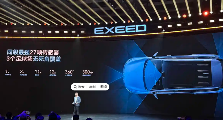 星途ET5的核心亮点集中在高阶辅助驾驶系统。顶配车型搭载的猎鹰700系统,全球首发地平线征程6P芯片,560TOPS算力足以支撑复杂场景运算,配合1颗激光雷达+26颗辅助传感器的硬件组合。
