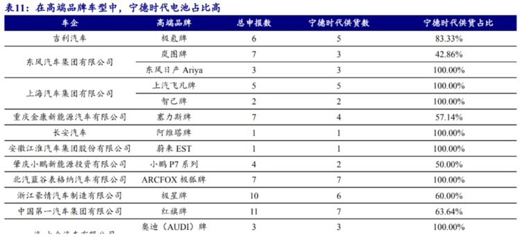 截至目前,包括BBA、蔚来、理想在内的近50个品牌已与宁德时代深度绑定,合作车型超过百款。从三十万元以上的高端车型到十多万元的主流产品,宁德时代的身影遍布各个细分市场。