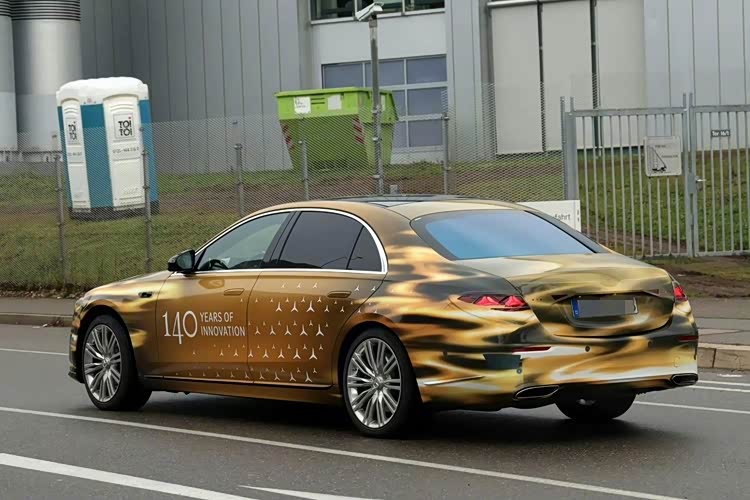 车尾也换上了与奔驰E级类似的三叉星徽尾灯组,另外在照片中能明显看出在转弯时后轮也有转动角度,说明新车将会配备后轮转向功能。