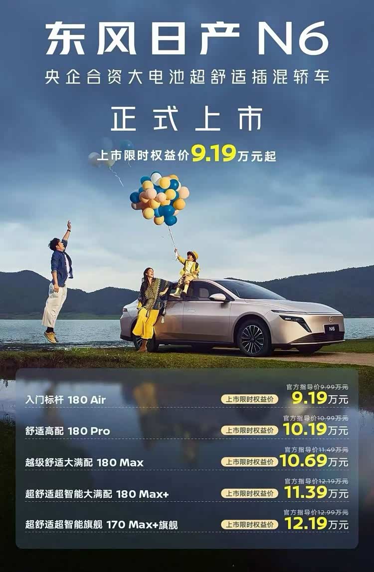 从“史上最舒适的发布会”到9.19万起的惊喜定价,从“大小王+四个2”的硬核配置到央企合资的品质保障,东风日产N6的上市不仅是一次产品发布,更是对插混市场价值标准的重新定义。在新能源转型的关键节点,N6以用户需求为核心,用技术创新打破价格壁垒,让中高级插混轿车的舒适与智能体验触手可及。