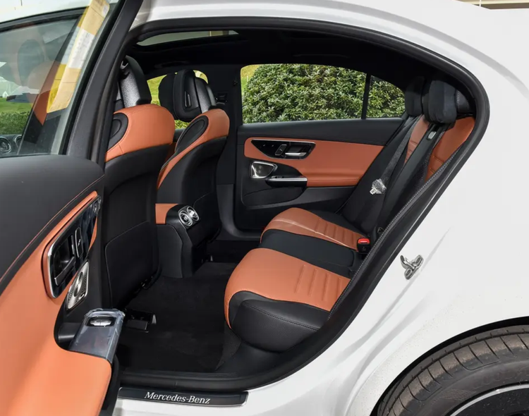 车身的轮廓营造出轿跑风格,营造出较为时尚化的既视感,但我觉得奔驰侧面不如宝马3那么运用,或许是因为宝马3系运用到立体感更强一些。反观奔驰C级的设计更简约时尚一些,饱满的车门搭配机械门把手,还有侧裙和车门腰线的布局都让奔驰C级看起来更优雅一些。搭配的五角星轮毂造型很时尚,轮毂尺寸也来到18英寸,后视镜和细节上也采用黑色元素,黑白配色无论什么时候都不会过时。尾部的小鸭尾也采用类似碳纤维的黑色饰板,与黑色的下包围相呼应,双出排气管也加入镀铬双饰,与梅赛德斯-奔驰E级的尾灯类似,也增强了车尾的豪华性。梅赛德斯-奔驰C级车的长、宽、高为4882mm×1820mm×1461mm,轴距为2954mm,就算身高178cm的消费者也拥有两拳以上腿部空间,搭配上全景天窗,即便长途乘坐也不会有压抑感。