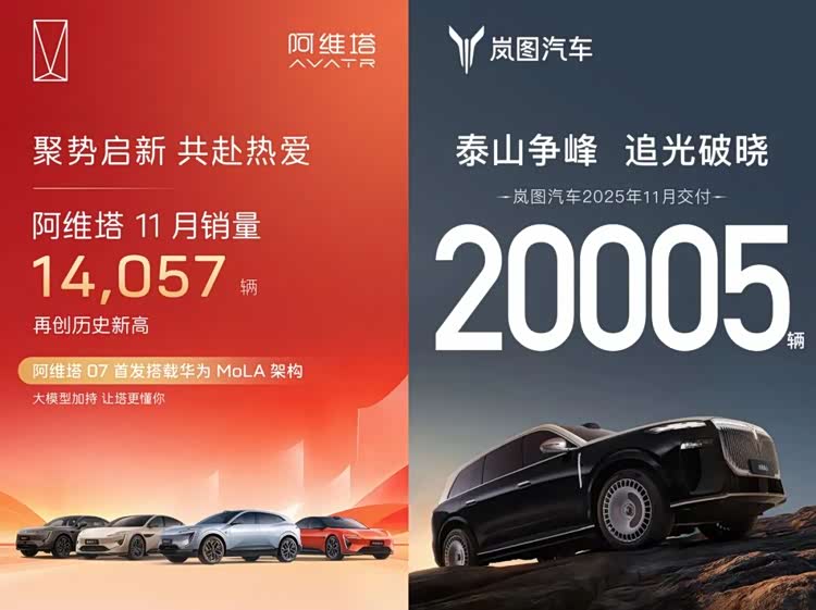 阿维塔家族11月销量14057 辆,同比增长21.4%,再创历史新高,并已连续9个月销量破万。就在11月底,阿维塔已经向港交所提交上市申请,计划2026年第二季度完成上市。
