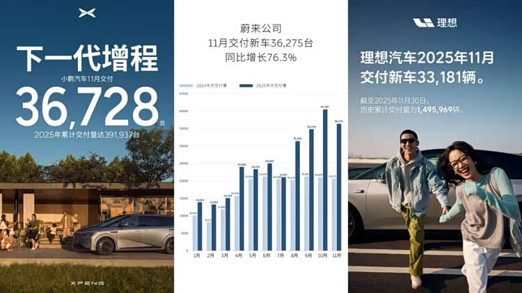 虽然销量向好,但是没有人敢提价。2025年11月,新势力的排行顺序为:零跑、小鹏、蔚来和理想。