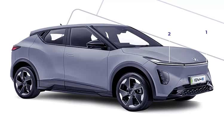 QV-E长4170毫米(164.2英寸),轴距为2680毫米(105.5英寸),将紧凑的尺寸与运动型姿态相结合。其前脸采用锐利的分体式LED大灯、轮廓分明的引擎盖和肌肉感十足的翼子板。