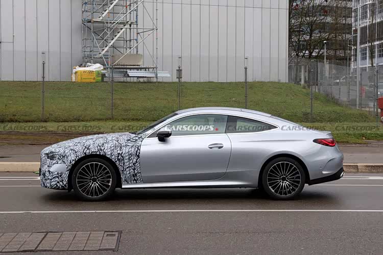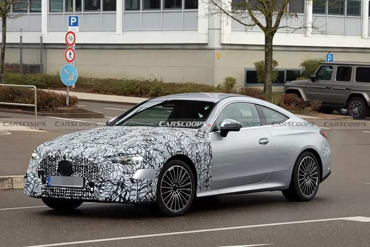 预计这款双门轿跑将追随改款C级车的步伐,配备星形大灯,这种设计已经抛弃了以往的低调风格。从谍照中很难看清其他细节,但我们可以期待新车将拥有新的前保险杠和更新的格栅。