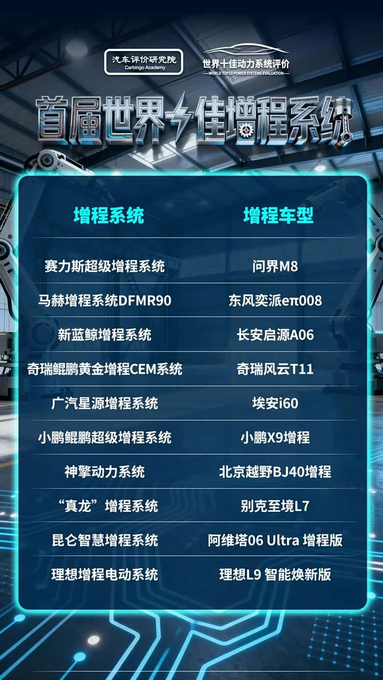 附:首届世界十佳增城系统和世界十佳增程车型榜单