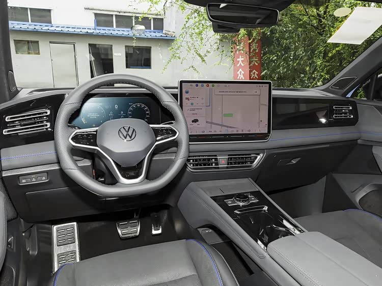进入车内,首先被 “六屏联动” 的科技布局吸引:10.3 英寸全液晶仪表、15 英寸 2K 悬浮中控屏与可选装的 11.6 英寸副驾娱乐屏形成联动,搭配抬头显示与空调控制屏,信息呈现直观且全面。怀挡设计是内饰的一大革新,取代了传统挡把,释放出中控台下方的超大储物区,手机、钥匙等物品可随手放置,实用性大幅提升。车机系统搭载高通骁龙 8155 芯片,支持 5G 网络与双音区语音识别,响应迅速且操作流畅。空间表现是途观 L 的传统优势,2791mm 轴距让后排腿部空间极为充裕,身高 180cm 的乘客也能轻松跷二郎腿,座椅靠背角度可调,长途乘坐不易疲劳。行李厢常规容积达 471 升,后排座椅按 40:60 比例放倒后可扩展至 1696 升。