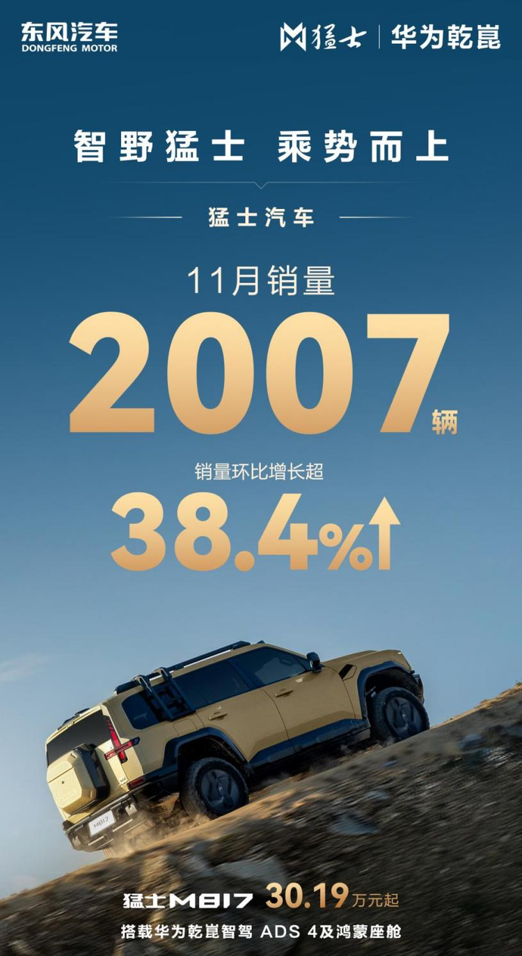 猛士汽车销量再上新台阶!11月2007台,环比大涨38.4%