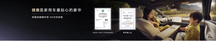 坐进N6车内,360°环抱式座舱与超85%软包覆盖,带来家的温馨与柔软。自研“凝脂材质”座椅,细腻触感堪比顶级皮革。整车内饰更获得母婴级亲肤认证和中汽中心零甲醛认证,呵护家人健康。米白与雅黑两款内饰配色,搭配玫瑰金和暗夜紫饰条,细节之处彰显精致格调。