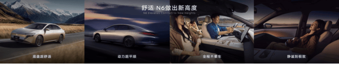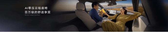 N6的第二张王牌,是极致舒适体验。其拥有87%的“得房率”,宽适空间同级第一。前排配备N7同款“百万级大沙发”——AI零压云毯座椅,内置“自适应体态”AI算法,支持OTA升级,越坐越舒适;后排则搭载全新研发的零压云毯大沙发,让全家同享百万级舒适体验。