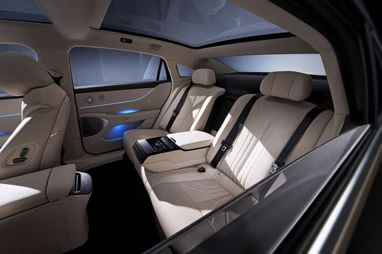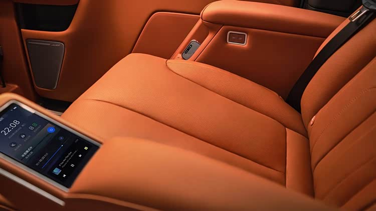 内饰部分,新车注重豪华舒适与科技感的营造,首发“恒温、恒湿、恒氧、恒洁、恒静”的“五恒”座舱。同时,新车搭载10.25英寸仪表屏、16.3英寸中控屏、16.3英寸副驾屏以及21英寸4K后舱多媒体智慧屏,组成了强大的智能交互系统,配备高通最新一代SA8775P芯片,操作流畅,响应迅速。50英寸全景AR-HUD抬头显示以及二排两个5.5英寸智慧移动管家屏,进一步提升了车内的科技氛围。二排智慧移动管家屏可控制二排座椅、空调、冰箱,还支持小憩模式,为乘客带来极致的舒适体验。