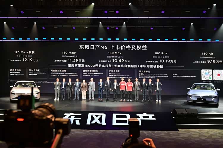 2025年12月1日,东风日产以“史上最舒适的发布会”为主题召开了发布会,中国羽毛球队的佼佼者“梁王组合”亮相发布会现场,可谓是强强联合。东风日产旗下首款插混轿车——东风日产 N6 正式上市,共推出5款配置车型,12月15日前下单可享限时售价9.19万元—12.19万元,还有跨年购置税补贴(180Pro\180Max)。还推出了无套路自燃包赔权益:不限首任车主、不限定整车质保期内、不限定是否达到报废标准。