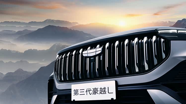 于外,豪越L的设计语言是对山河大地的虔诚致敬。前脸采用的“百川归流”格栅,是吉利4.0时代家族设计的精髓延伸。16道镀铬饰条秩序井然地纵向排列,宛如“飞流直下三千尺”的凝固瞬间,赋予车头拔地而起的磅礴气势。其工艺细节尤为考究,采用五层复合结构的高端热烫印膜,内含超薄金属层,通过真空高温蒸发沉积技术打造,呈现的光泽与质感超越了传统电镀,更兼具卓越的耐用性,构筑起醒目而精致的视觉中心。