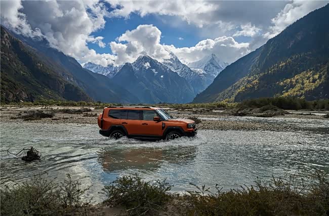 虽说涉水能力是硬派越野的“隐性刚需”,防城市内涝绝对是所有车主的“燃眉之急”。纵横G700在空簧模式下的涉水深度达970mm,且发动机、电池、电机均达到IP68防水等级,发动机泡水48h仍能正常启动,这种“全域防水”特性使其具备浅滩浮水通过能力,助力G700成为百年汽车工业史上首款成功横渡长江的越野车,可以轻松应对突发暴雨导致的低洼路段积水和城市内涝。