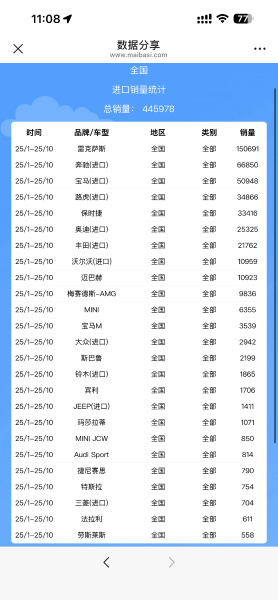 从进口来源看,市场结构正在调整。日本、德国、英国等传统主力进口国地位依然稳固,但来自美国的汽车进口量出现断崖式下跌,前10个月同比下降高达53%,这凸显了外部贸易环境的影响。