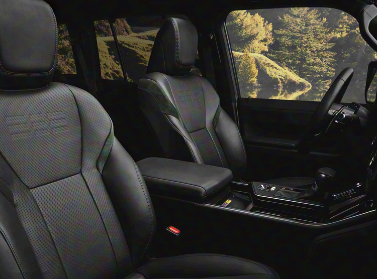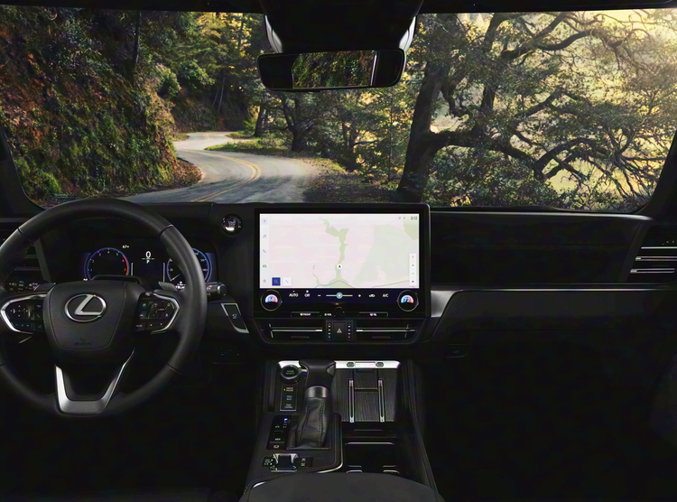 全新的雷克萨斯GX座舱采用了大面积真皮材质和软性材质的铺陈,还加入了大量黑灰色实木装饰面板,还有银质金属材质的点缀,提供了64色氛围灯等多项舒适性配置还保留了大颗粒物理按键和传统的换挡手柄。中控台配备了经典的三辐式多功能方向盘和银质金属换挡拨片,带来了全新的操控体验。还配备了12.3英寸仪表屏+14英寸中控屏,并搭载升级的多媒体系统,整合Cloud Navi导航、智能语音助手、手机互联等功能。还标配了HUD抬头显示功能。扶手箱位置的配置也很齐全,右侧有Type-C接口、2个USB接口,下方还有12V电源接口,两把差速锁的按钮。还配备了雷克萨斯智能安全系统LSS+3.0,支持预碰撞安全系统、变道辅助LCALCA、动态雷达巡航控制系统等。