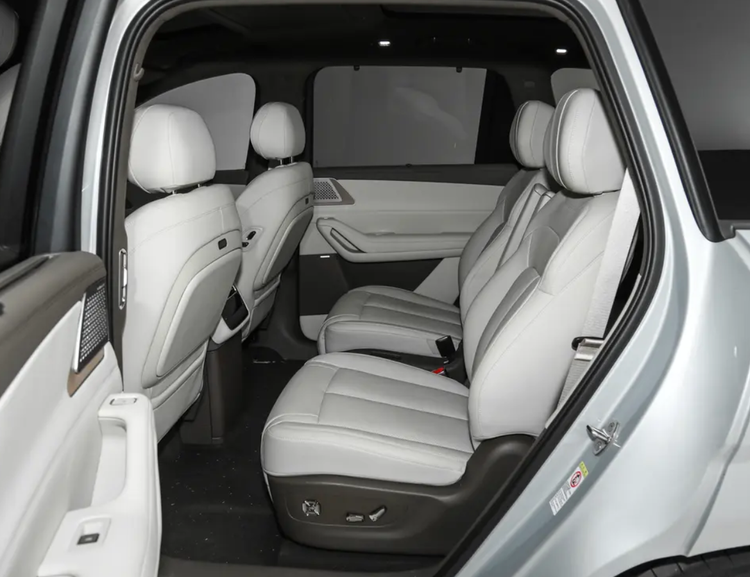 它采用2+2+2的六座布局,第二排为独立座椅并支持前后移动,包括座椅也支持多向电动调节,个别车型也带有座椅加热通风以及按摩,腿托功能同样没有缺失。全景天窗也可以照顾中间和后排乘坐的需求,中间过道也很宽敞,第三排也不是应急而设计,就算成年人坐在后排也拥有2拳的腿部空间,以及更富裕的头部空间。悬架为双独立设计,后排也有17.3英寸的吸顶屏,128色的氛围灯,车载冰箱、配置层用一句话形容就是智能化很高。