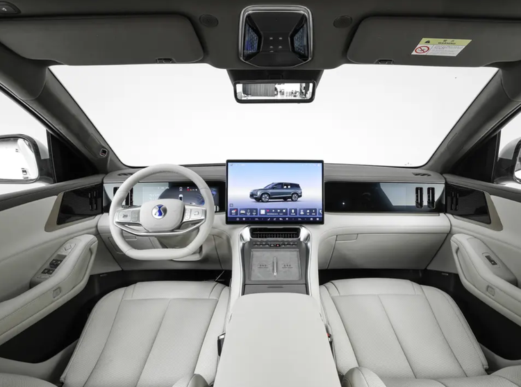 来到内饰,我觉得腾势N8L打造的精细化和时尚感很强,在颜色搭配就显得年轻个性化,在车顶上方的夜灯区域还加入透明材质,给人一种很高端的质感。包括它的座椅缝线工艺,以及车门等细节的软包和设计布局都显得很大气。前排的空调出风口也加入烤漆饰板,虽然好看但会留下指纹。配的多功能方向盘是平底式,白色内饰很温馨很豪华但不耐脏,这个内饰色我并不推荐的。中控浮岛也有双手机支持,液晶仪表是12.3英寸,部分车型带有50英寸的AR-HUD抬头显示,中控屏是17.3英寸的,搭载的车机为新一代的DiLink 150,关于功能与配置就不言而喻,不仅符合年轻人操作习惯,也满足年轻人想要的科技感。