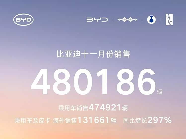 比亚迪毫无悬念地蝉联了新能源车的销冠,11月的批发销量为474921辆,创造了本年度批发销量新高,在比亚迪官方发布的信息中,其海外销量为131661辆,同比增长297%;吉利汽车的新能源车批发销量为187798辆,同比增长53%,其中吉利银河品牌11月份的批发销量就超过了13万辆,同比增长76%。