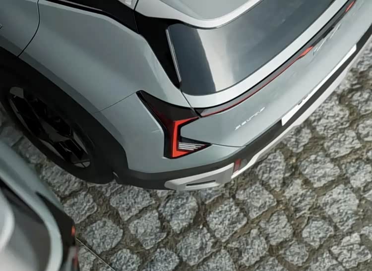 外观设计是全新起亚赛图斯的最大亮点,硬派基因贯穿全车。前脸处,采用起亚最新的“虎啸式”进化格栅,内部以蜂窝状熏黑纹理填充,搭配两侧造型犀利的LED大灯组,灯腔内“闪电式”日间行车灯点亮后极具辨识度。最直观的变化是在外观上融入更加锐利的线条——引擎盖上的隆起线条与格栅边缘的棱角完美衔接,前包围两侧的导风口采用切割式设计,搭配银色下护板,既增强了视觉冲击力,又凸显硬派属性。这种设计并非凭空创造,而是设计灵感来自于品牌旗下的硬派燃油SUV以及电动汽车,将燃油车的力量感与电动车的科技感相融合。