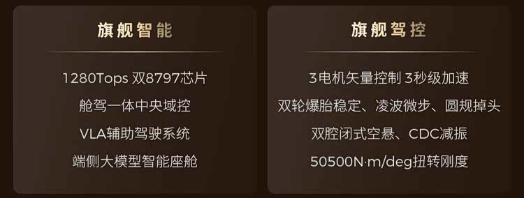 在更多机械素养上,它还配备了前双叉臂加后五连杆的独立悬架、双腔空气悬架与CDC减振系统,支持LMC 2.0底盘融合控制技术,支持双轮爆胎稳定和凌波微步。