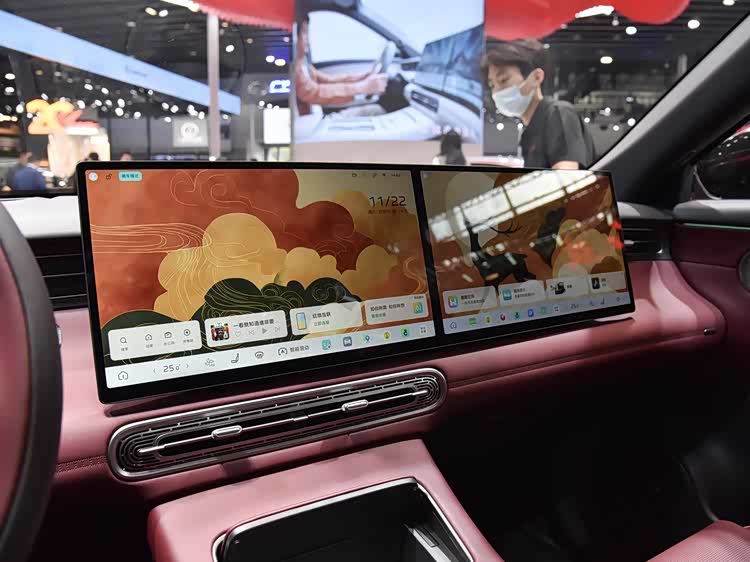 内饰方面,新车采用了内嵌式的小尺寸矩形全液晶仪表盘,并搭配双色三辐式多功能方向盘,中控台上配备了多媒体屏与副驾屏的双联屏设计,屏幕尺寸和分辨率达到了15.6英寸2.5K,内置高通骁龙8295P芯片。