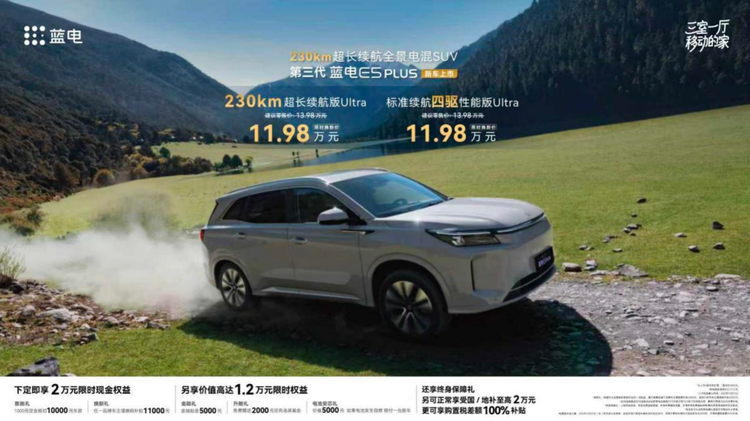 今日(12月3日),号称“火锅神车”的第三代 蓝电E5 PLUS(参数|询价)正式上市,有230km超长续航版Ultra与标准续航四驱性能版Ultra两款车型,官方指导价都是13.98万元,限时换新价格11.98万元,真正做到“入门即顶配”。好家伙,现在四驱的价格都不到12万了!