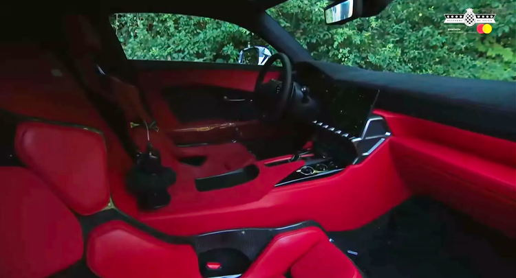 根据此前曝光的内饰谍照,LFR车内以红色作为主色调,配备Recaro碳纤维桶形座椅,中控台与内饰面板覆盖大量Alcantara材质。中控屏幕下方保留了一排实体按键,换挡机构采用紧凑型自动挡把设计。仪表台为独立布局,搭配平底运动方向盘。