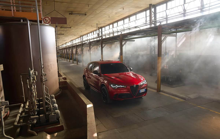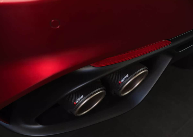 从外观来看,新车采用了专属的红色车漆,这种颜色的灵感来源于阿尔法·罗密欧历史上的33 Stradale车型所提供的Rosso Villa D'Este色调。在具体呈现上,Giulia朱丽叶四叶草Collezione版的红色光泽偏暗,这种处理方式意在强化其运动感;而Stelvio斯坦维四叶草Collezione版的红色则更为鲜亮,试图传达一种更开放的风格。除了车漆,两款车还配备了多处碳纤维饰件,包括外后视镜、车顶和排气管尾喉等细节部位。碳陶瓷制动系统也作为标准配置出现,这些元素共同构成了车辆的外部特征,没有过多浮夸的装饰,而是通过材料选择来体现差异。