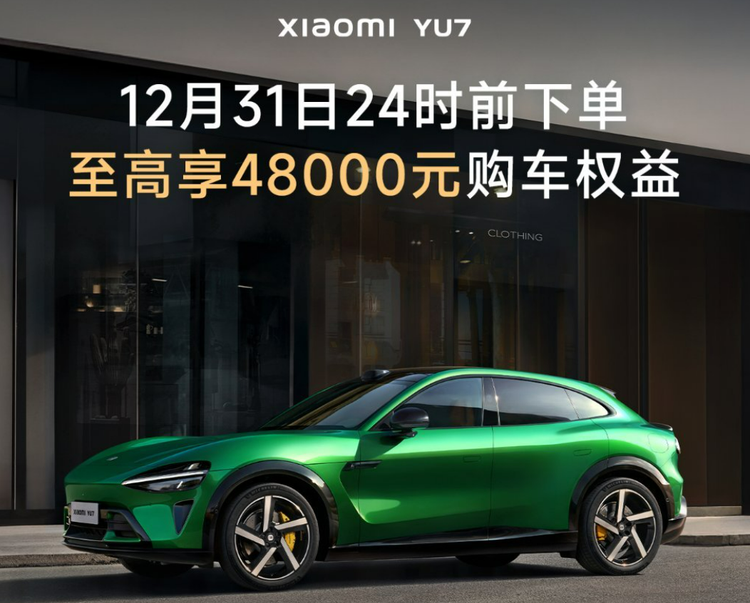 1、小米YU7:价值8000元Nappa真皮座椅免费送、价值2000元电动前备箱免费送、价值1000元HEPA高效空气净化系统免费送、价值26000元Xiaomi HAD 端到端辅助驾驶终身免费使用权、价值11000元碳纤维后视镜+碳纤维迎宾踏板免费送(Max版本);