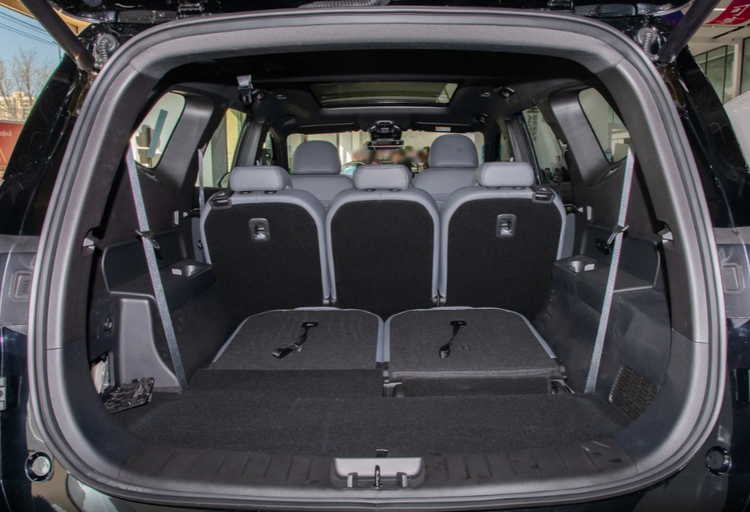 豪越L这车本来就宽(1910mm),做成5座,后备厢容积直接干到628升,后排二郎腿随便翘,过年回家拉年货、周末出去露营,这空间相当于就是一个移动仓库了。