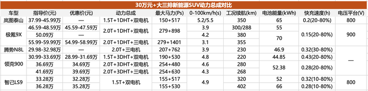 至于其它3款插混SUV,动力总成的规格明显要高不少。