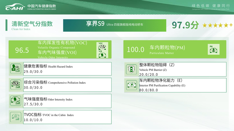 享界S9之所以能够获得如此高的评价,离不开其在清新空气、健康防护和绿色出行三个方面的出色表现。在清新空气方面,享界S9采用了先进的空气净化技术,有效去除了车内的有害物质和异味,为驾乘者提供了一个清新宜人的驾乘环境。特别是其搭载的鸿蒙ALPS健康座舱,更是将车内空气净化提升到了一个新的高度。