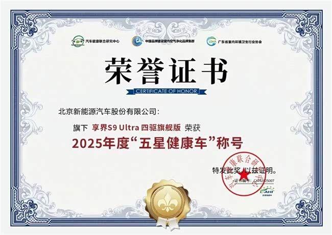 车家号·0浏览·2025-12-03 13:43 · 湖北在汽车行业日益注重健康与环保的今天, 享界S9(参数|询价)以其卓越的“五星健康车”认证,成为了新能源汽车领域的一颗璀璨明星。11月28日,在2025中国汽车环境与健康高质量发展论坛上,享界S9凭借其在清新空气、健康防护、绿色出行三个维度的杰出表现,荣获了这一殊荣,为全家人带来了顶级的健康守护。