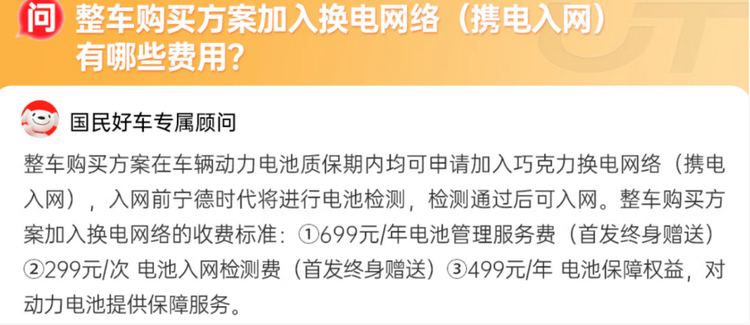 买断电池后,如果用户希望继续享受换电服务,每年需要支付699元的电池管理费用和499元的电池保障权益。不过,对于享有首发权益的用户,电池管理费用可以终身免除。