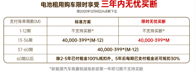 目前电池月租金为399元,但这一优惠价格仅限12月8日前下定的用户。此后,月租金将恢复至499元。
