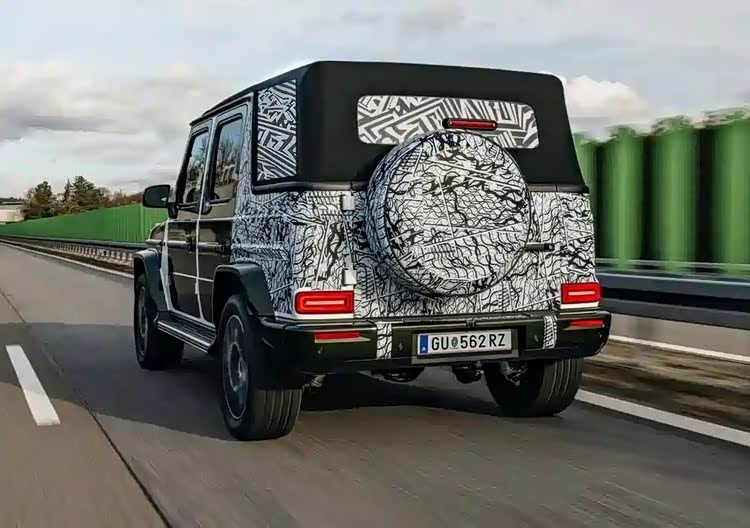 设计方面,全新G级敞篷版的外观基本延续了普通版的设计走向,不同的是,敞篷版车展在C柱之后采用了软顶敞篷材质,车尾仍会引入尾窗,不过面积预计将减小。尾门上依旧配有外挂备胎,长方形尾灯位于两侧下方。从外观上判断,这款车大概率是基于奔驰G 500改进而来。