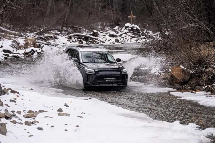 这一关键性能的可靠性,获得了权威机构的严苛背书。根据中汽中心发布的认证报告,验证内容明确要求车辆在电池高电量(SOC>80%)与低电量(SOC<20%)两种极端状态下,均需保持持续且稳定的四驱性能。在长白山极寒之地,第三代蓝电E5 PLUS在满电、亏电状态下,均成功征服冰雪陡坡,爬坡与防滑安全性能过硬。同时,面对雪地、砂石、山路、河道等复杂路况,也能从容通过,其通过性与四驱稳定性得到充分验证。