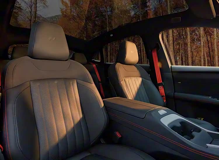细节方面,新车对车前机盖上的车标、侧面的轮圈、侧窗框架等多处进行了黑化处理,整车看上去“一黑到底”,很有战斗气息。与此同时,车内也采用了黑色基调,并搭配红色安全带和缝线的点缀,风格炫酷。