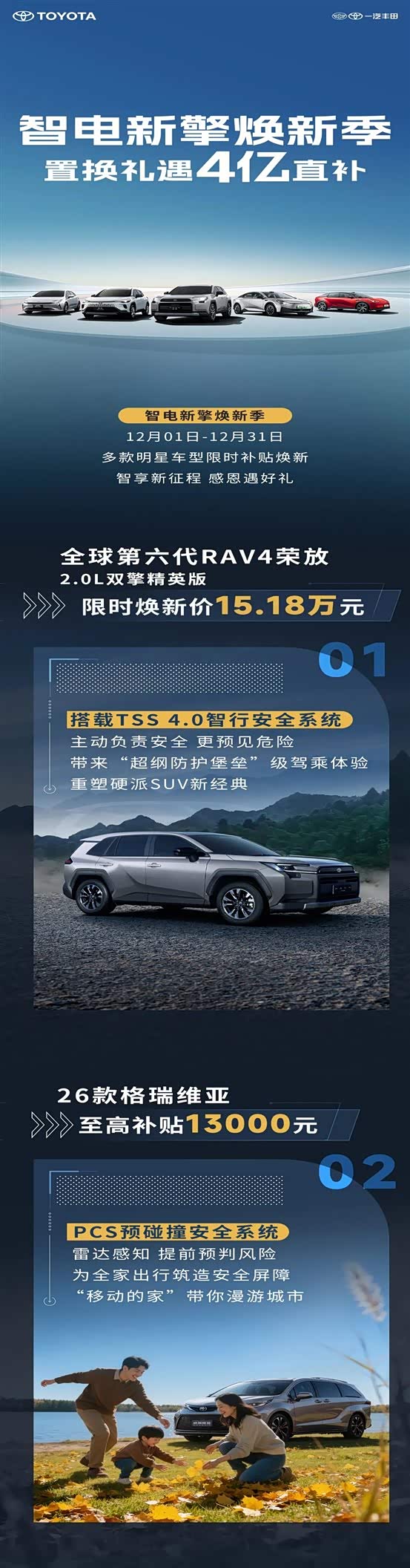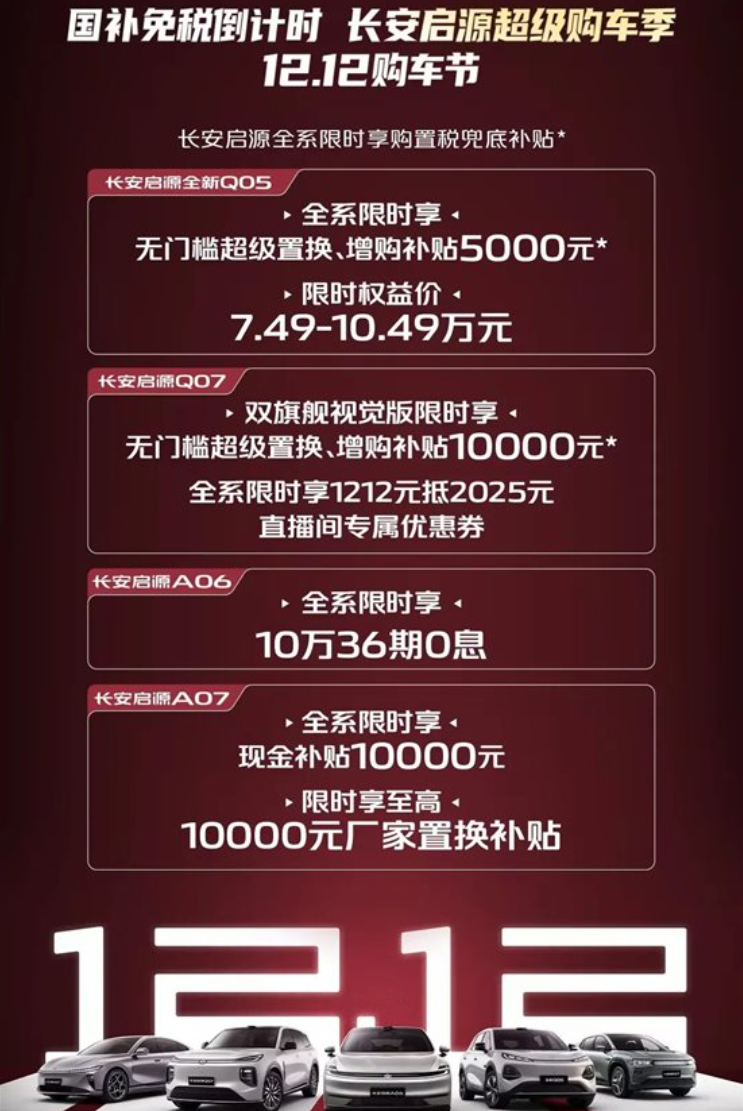 传统品牌方面,一汽丰田为购买RAV4、卡罗拉等热门车型的用户,直接赠送价值近万元的三星便携投影仪。长安启源、深蓝等则推出了“双12购车节”,特定车型的置换补贴和现金优惠叠加。