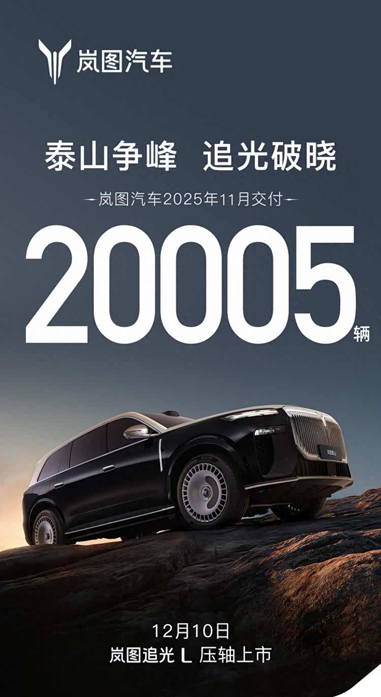 即将于12月10日上市的岚图追光L,将是岚图战略拼图上的最后一块关键落子。它的登场,意味着岚图完成了在SUV、MPV、轿车全部主流高端赛道的精锐布局,标志着品牌已具备与国际豪华巨头在全线产品上正面竞逐的完整实力。