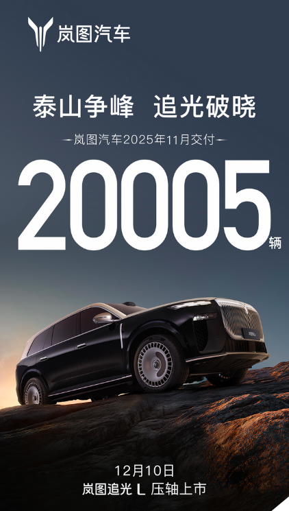 岚图以月销破两万的势能与三十万辆的基盘,为追光L的“压轴登场”铺就了一条坚实的红毯。