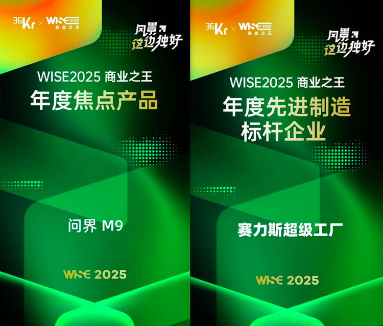 销量的爆发并非偶然。在11月28日举办的WISE2025商业之王大会上,赛力斯获得了来自业界的双重认可。