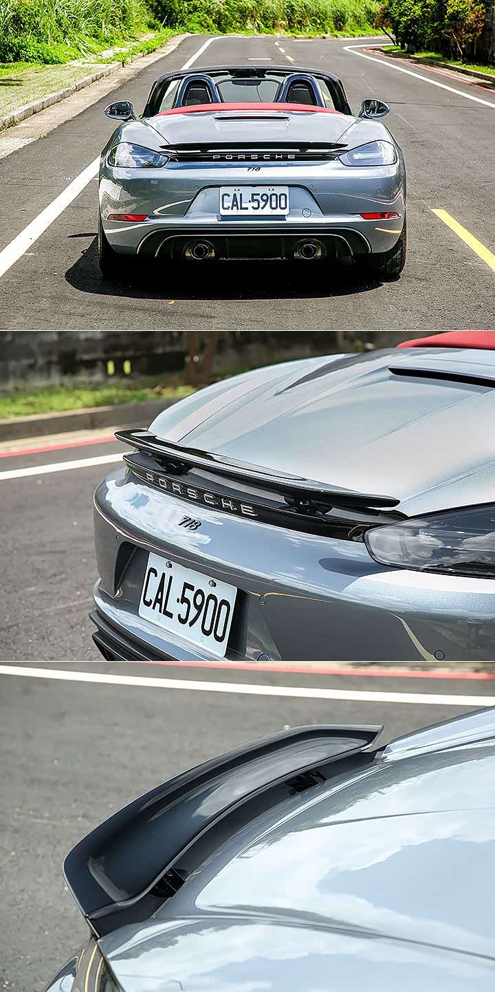 由于笔者先前曾试驾过采用 2.0 升水平对置 4 缸直喷涡轮引擎的入门 718 Cayman,还有在赛道上体验过 718 Boxster 等车型,对于 718 车系的整体轮廓算是并不陌生。不论是其长前悬、圆润具跑格的车身、还有后期改为 718 命名后采用的类贯穿式尾灯视觉,多年来都成为 718 车系不容错认的外观元素。