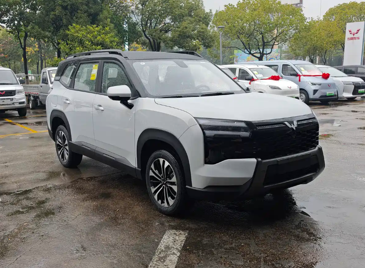 外观方面,新车采用了类似无边界设计的前格栅,并与两侧灯组融为一体,配合中央的银色五菱LOGO,营造出不错的整体感和视觉宽度。格栅内部以蜂窝状元素点缀,增添了运动气息。车身侧面采用了悬浮式车顶设计,配备亮黑色车顶行李架,结合前后轮眉处隆起的线条,提升了车身层次感。