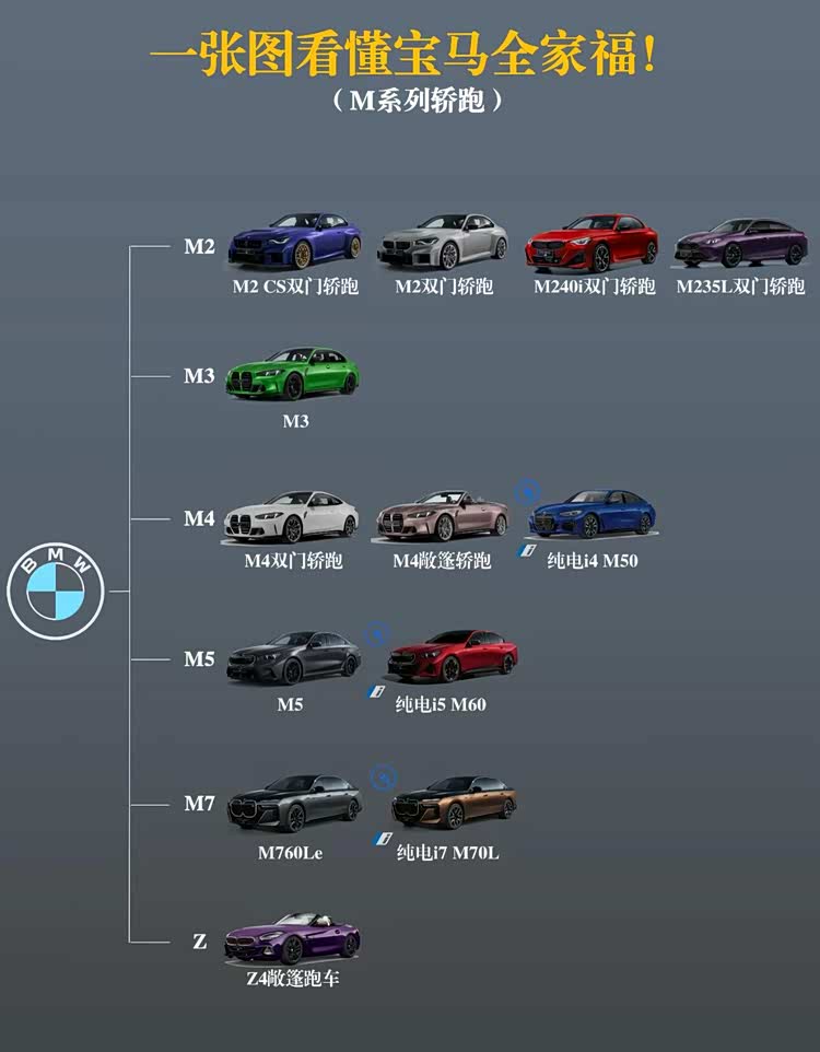 M桥跑/敞篷:M2(小钢炮,新手也能玩出漂移)、M4(双门/敞篷,帅到报警)、i4M50 (电车也能暴走);