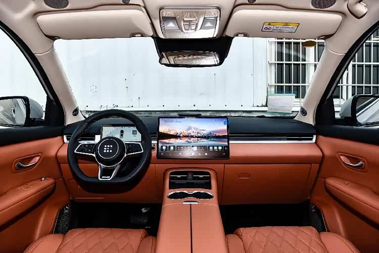 内饰部分,蓝电E5 PLUS中控台设计得四平八稳,大量平直的线条丰富了层次感。同时,多处细节辅以镀铬元素点缀,这在一定程度上增强了档次感。布局上,蓝电E5 PLUS采用了三辐平底式方向盘+电子怀挡,搭配有液晶仪表和15.6英寸悬浮式中控屏。