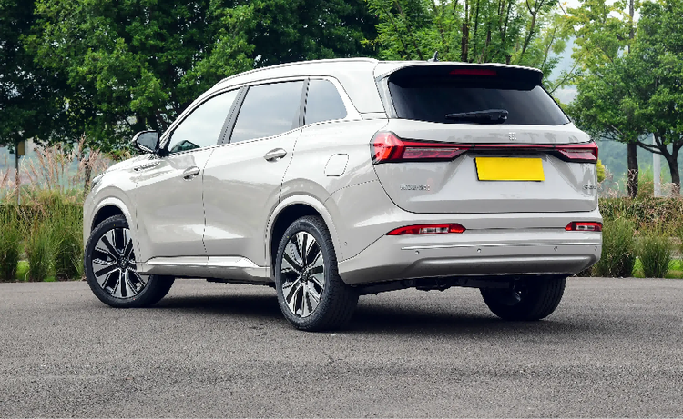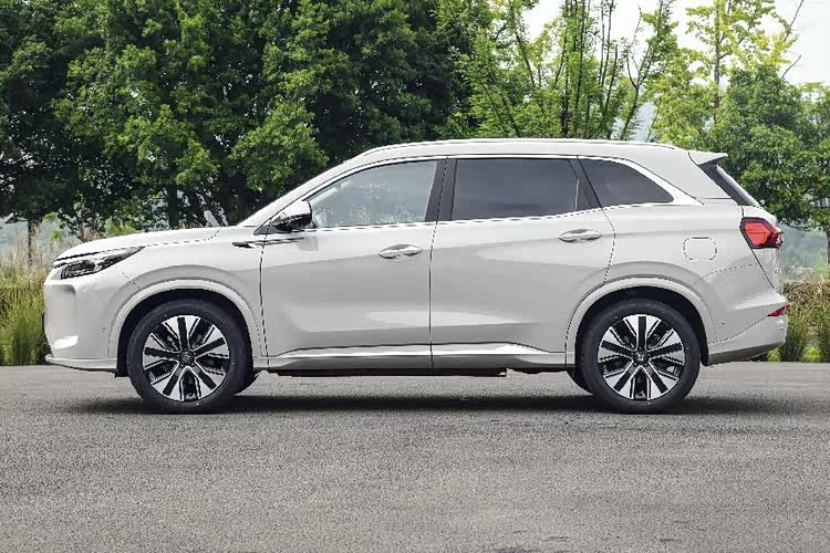 侧面设计布局没有变动,还是脱胎于原先的风光车型,从前轮眉拉至后尾灯的“肩线”搭配相应的隆起,为蓝电E5 PLUS塑造了一个矫健的“身姿”。而车窗边沿/侧裙等地的镀铬饰条,以及密集多辐式轮圈等设计元素,也增加了车辆的精致感。