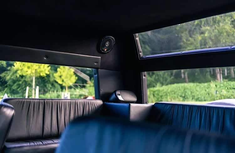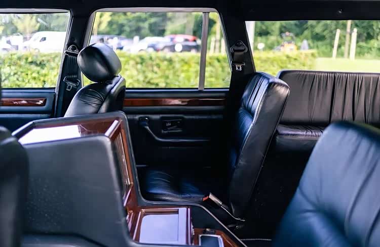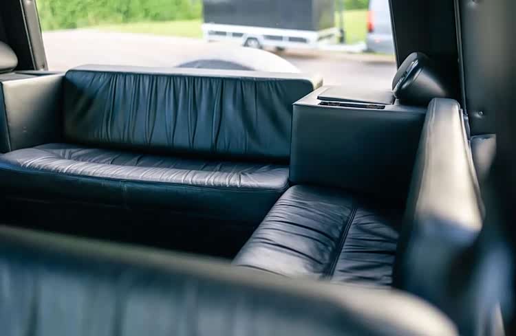 至于这款经过改装的LM002旅行车,车厢内部尽显20世纪80年代的奢华质感,高顶造型设计让空间更显开阔,内饰以黑色皮革与实木饰板交织搭配,环绕式后排座椅、圆形顶灯及复古娱乐设备一应俱全,像一个移动的豪华吧房。
