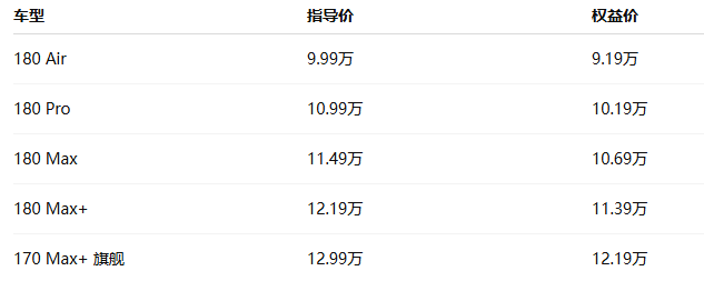 此次上市的五款车型覆盖 Air、Pro 到 Max+、旗舰等配置版本,价格策略清晰有效: